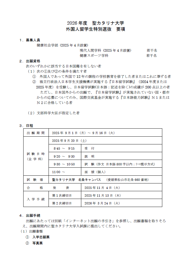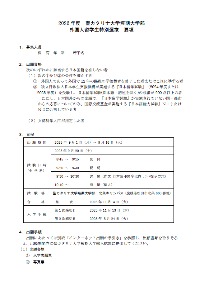 短大 外国人留学生特別選抜 要項[PDF]